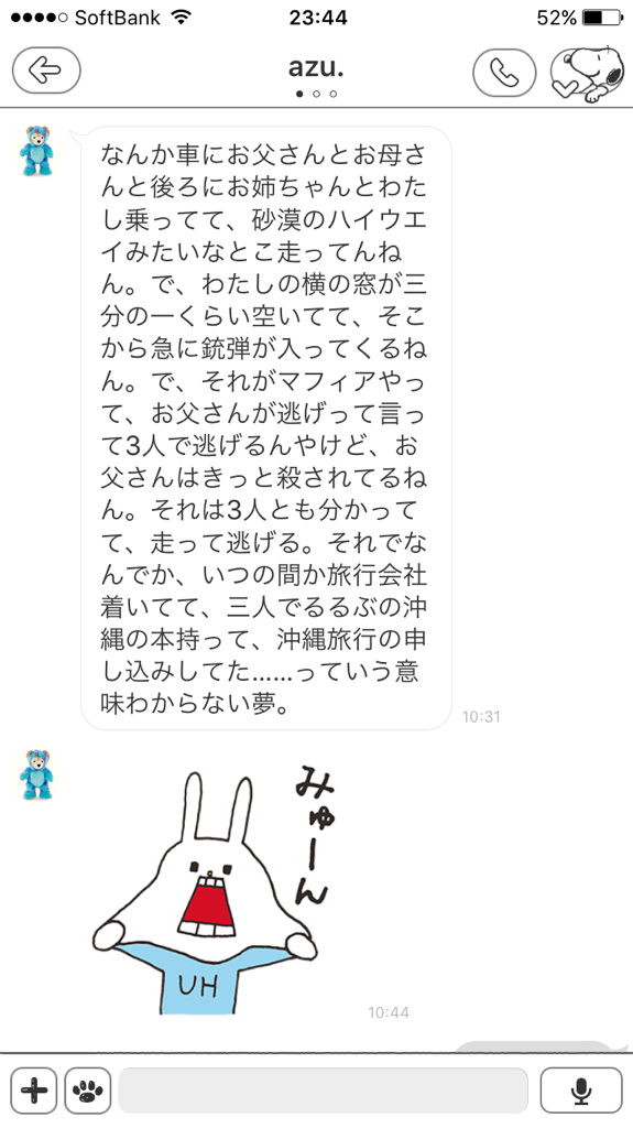 今日の朝妹から送られてきたライン。